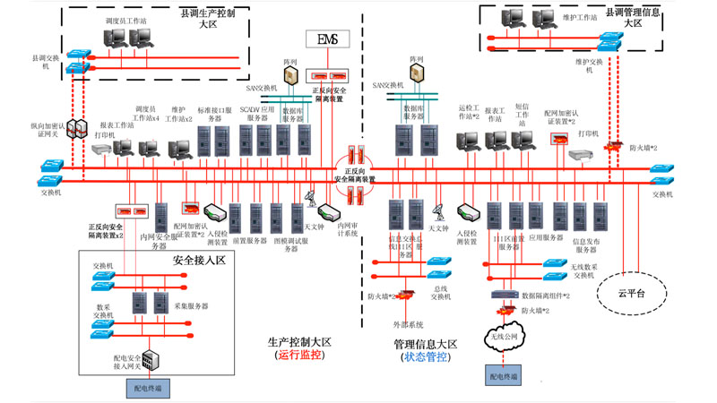 新一代配電自動化系統(tǒng)主站以大運(yùn)行與大檢修為應(yīng)用主體,遵循國網(wǎng)最新的配電主站系統(tǒng)架構(gòu)規(guī)范,按照“地縣一體化”部署,依據(jù)分區(qū)采集的原則,強(qiáng)化邊界防護(hù),安全接入光纖/無線、專網(wǎng)/公網(wǎng)等通訊方式的三遙終端、二遙終端及故障定位裝置,具備橫跨生產(chǎn)控制大區(qū)與管理信息大區(qū)一體化支撐能力,構(gòu)建基于配電網(wǎng)分析模型中心和運(yùn)行數(shù)據(jù)中心的新一代配電網(wǎng)調(diào)度支撐平臺,為運(yùn)行控制與運(yùn)維管理提供一體化的應(yīng)用,滿足配電網(wǎng)的運(yùn)行監(jiān)控與運(yùn)行狀態(tài)管控需求。 系統(tǒng)全面遵循IEC61968/61970標(biāo)準(zhǔn)設(shè)計,通過信息交互總線,實現(xiàn)與EMS、PMS2.0等多系統(tǒng)的數(shù)據(jù)共享,具備對外交互圖模數(shù)據(jù)、實時數(shù)據(jù)和歷史數(shù)據(jù)的功能,支撐各層級數(shù)據(jù)縱、橫向貫通以及分層應(yīng)用,形成配電網(wǎng)運(yùn)行監(jiān)控與調(diào)度作業(yè)的全過程閉環(huán)管理,支撐著配電網(wǎng)調(diào)控運(yùn)行、生產(chǎn)運(yùn)維管理、狀態(tài)檢修、缺陷及隱患分析等精益化管理,并為配電網(wǎng)規(guī)劃建設(shè)提供數(shù)據(jù)支持。