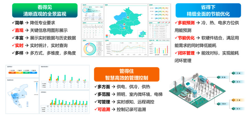 提供設(shè)備層、企業(yè)層、園區(qū)層、電網(wǎng)層等各層級冷熱電氣水綜合能源網(wǎng)絡(luò)的能源管理服務(wù),降低用能成本,提升能源利用效率,減少運維人力需求。